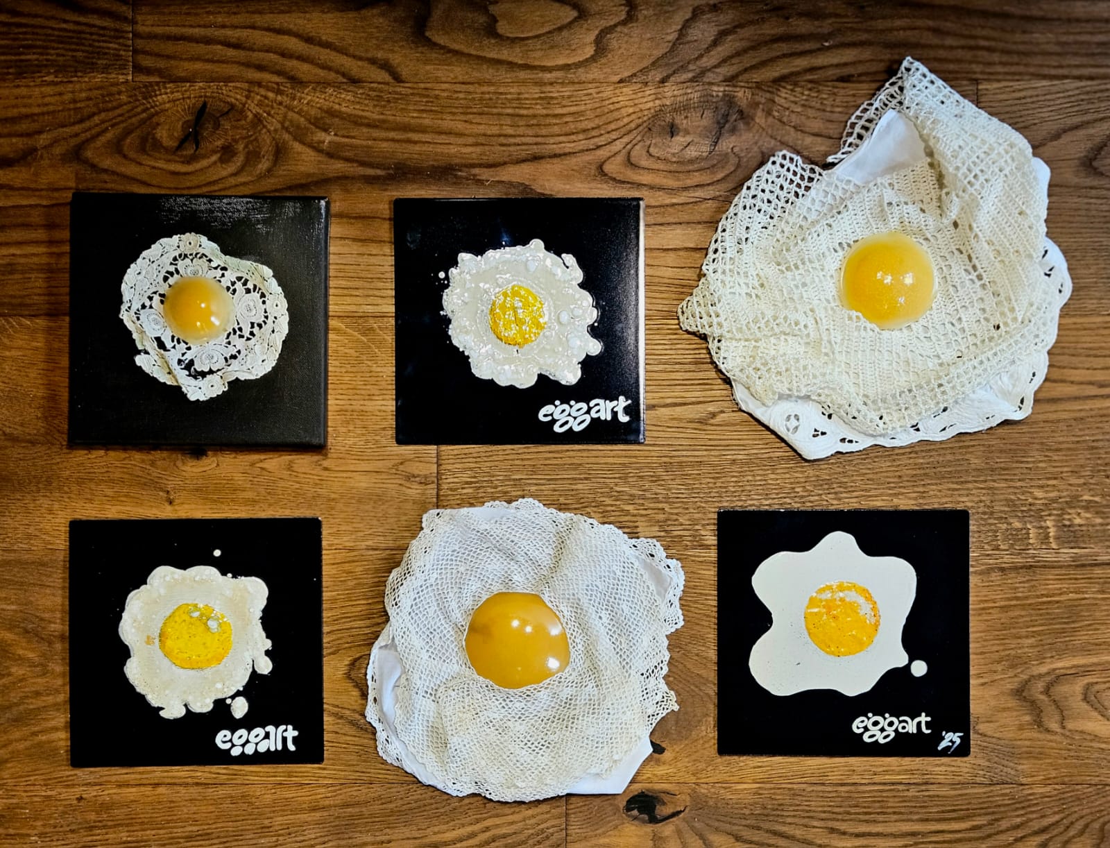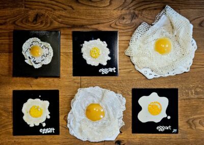 Er wird Spiegeleier gestalten – aber nicht irgendwelche, sondern welche, die unter Einsatz von alten Stofftaschentüchern und Tischdecken zu absoluten Kunstwerken werden.